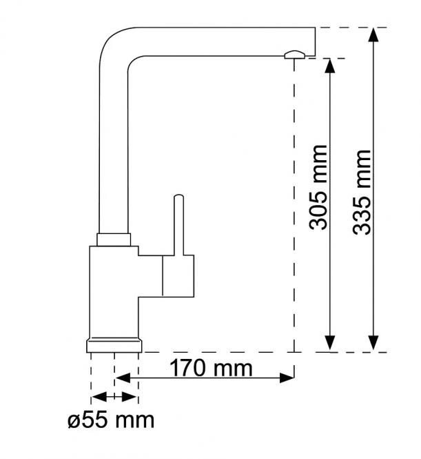 - Wozu dient das 55-mm-Montageloch? Diese Armatur hat eine breitere Basis und benötigt daher eine nicht standardmäßige Bohrung mit einem Durchmesser von 55 mm in der Arbeitsplatte oder Spüle. Dies verleiht der Armatur eine höhere Stabilität und ein ausdrucksstärkeres Design. Stellen Sie vor dem Kauf sicher, dass Ihre Spüle oder Arbeitsplatte diese Anforderung erfüllt.