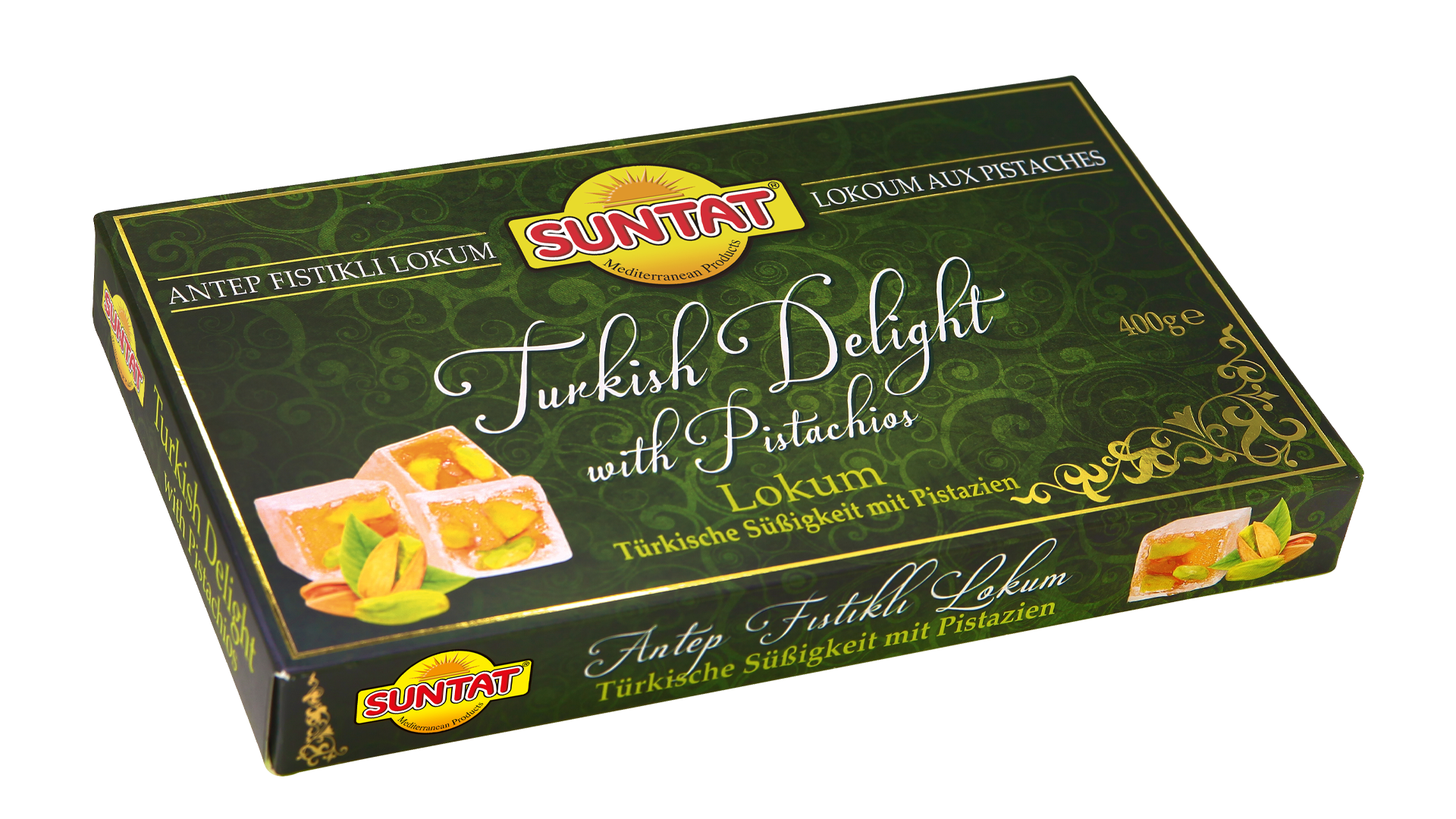 Türkische Süßigkeiten sind zweifellos beliebt und weltweit bekannt. Leckereien, die nach alten Traditionen hergestellt werden – Konsistenz ähnlich wie Gelee-Stücke, die oft mit natürlichen Aromen wie Vanille, Granatapfel, Pistazien usw. verfeinert sind. Obenauf wird Puderzucker gestreut, der einfach im Mund zergeht. Traditioneller Lokum wird nur in Griechenland und der Türkei hergestellt. Oftmals wird diese Leckerei zu einem ausgezeichneten Geschenk für die Lieben, wenn man aus dem Urlaub in warmen Ländern zurückkehrt. Jetzt brauchen Sie keine weiten Reisen mehr zu machen – der Lokum kann Sie mit seinem Geschmack beglücken, wann immer Sie möchten. Wählen Sie aus verschiedenen Sorten. Lokum mit Pistaziengeschmack wird in Schachteln zu 400 g und 250 g verkauft. Dieser 400 g Lokum mit Pistazien eignet sich hervorragend als Süßigkeit zum Tee oder Kaffee sowie als leckeres Geschenk für Freunde. Wenn Sie nicht vorhaben, in den “Eastanbul” Laden zu gehen, können Sie Lokum auch online in unserem Onlineshop kaufen. “SUNTAT” ist eine Marke von hoher Qualität, die weltweit bekannt ist. Es ist ein Familienunternehmen, das aus Liebe zur traditionellen Esskultur der Mittelmeerküste entstanden ist. “SUNTAT” ist seit 1986 tätig und bekannt für hochwertige Lebensmittel, die in über 50 Länder geliefert werden.