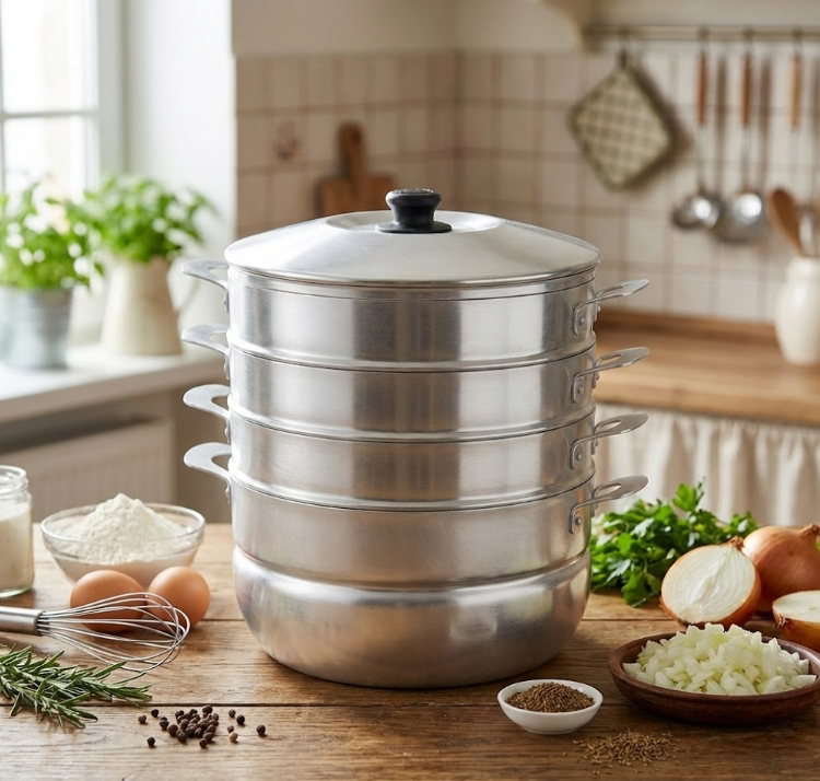 Ein Dampfgarer, auch Mantowarka oder „Manty-Kazan“ genannt, ist speziell für die Dampfzubereitung von Teigwaren konzipiert. 4 separate Ebenen (Roste) sorgen dafür, dass der heiße Dampf jeden Manta gleichmäßig umhüllt. Das Ergebnis? Der dünne Teig gart gleichmäßig, und die Fleischbrühe bleibt im Inneren. Dies ist ein unverzichtbares Kochgerät nicht nur für die Zubereitung von Mantais, sondern auch von Chinkali, Pelmeni, gefüllten „Teigtaschen“ oder einfach einer großen Menge Gemüse für eine gesunde Ernährung.