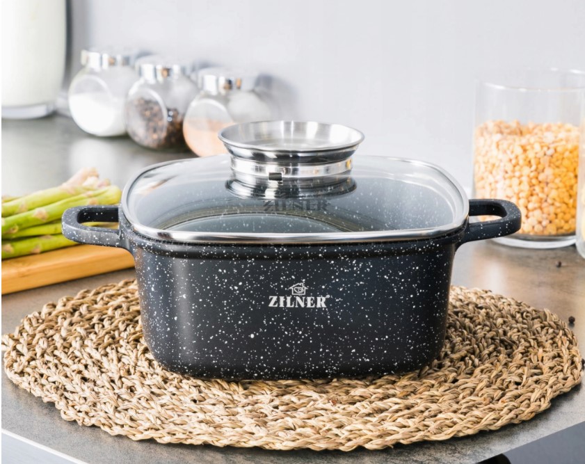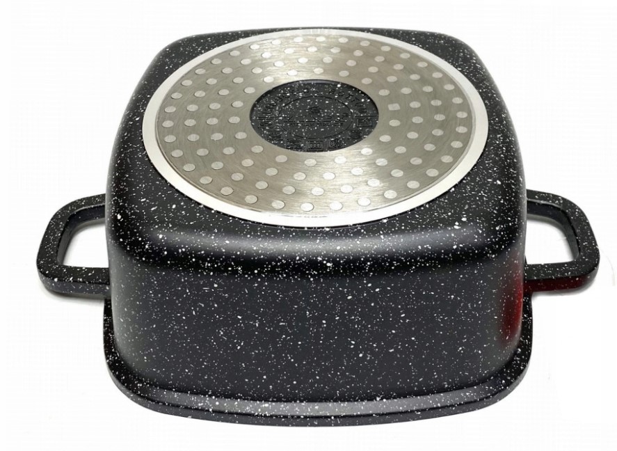 Aus Aluminium-Druckguss mit marmorierter Antihaftbeschichtung. Mit einer dauerhaften Antihaft-Marmorbeschichtung ermöglicht dieses Produkt das Kochen gesunder Speisen ohne Fett, ist leicht zu reinigen und verhindert das Anhaften von Speisen. Das verwendete Material unterstützt und überträgt Wärme perfekt.