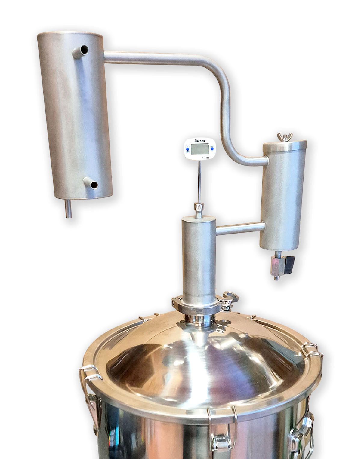 • Eigenständige Modifikationsmöglichkeit – 2″-Klemmverbindung (Schellenanschluss) gibt die Möglichkeit, andere Komponenten für die Destillation zu verwenden, z.B., eine zusätzliche Zarge, ein Diopter oder einen Alembik;