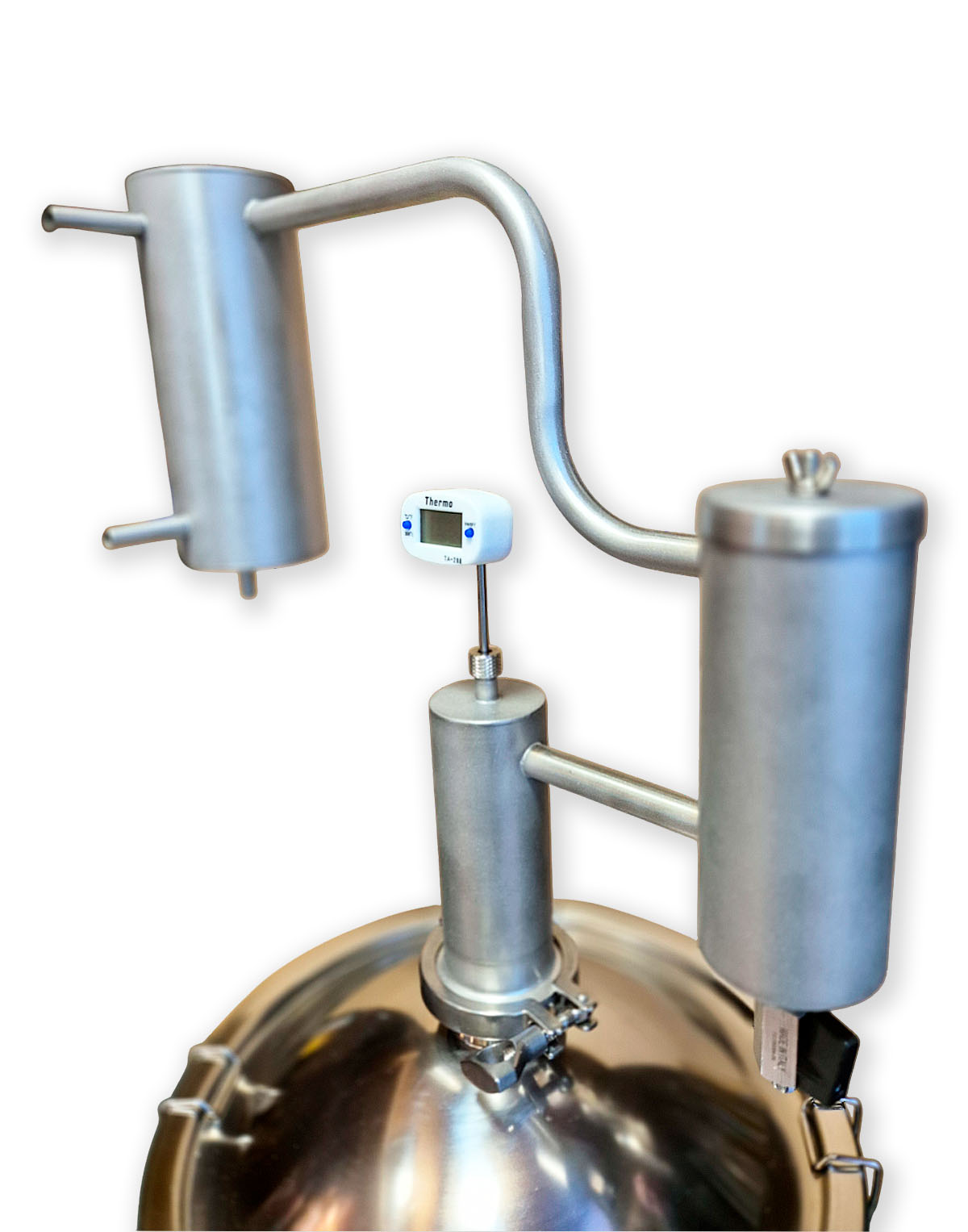 • Eigenständige Modifikationsmöglichkeit – 2″-Klemmverbindung (Schellenanschluss) gibt die Möglichkeit, andere Komponenten für die Destillation zu verwenden, z.B., eine zusätzliche Zarge, ein Diopter oder einen Alembik;