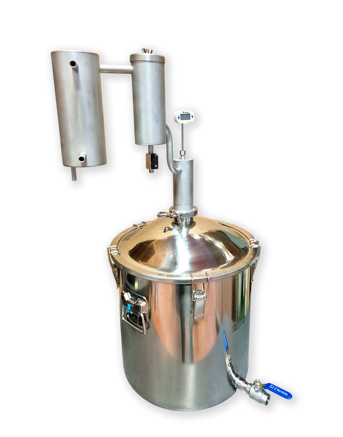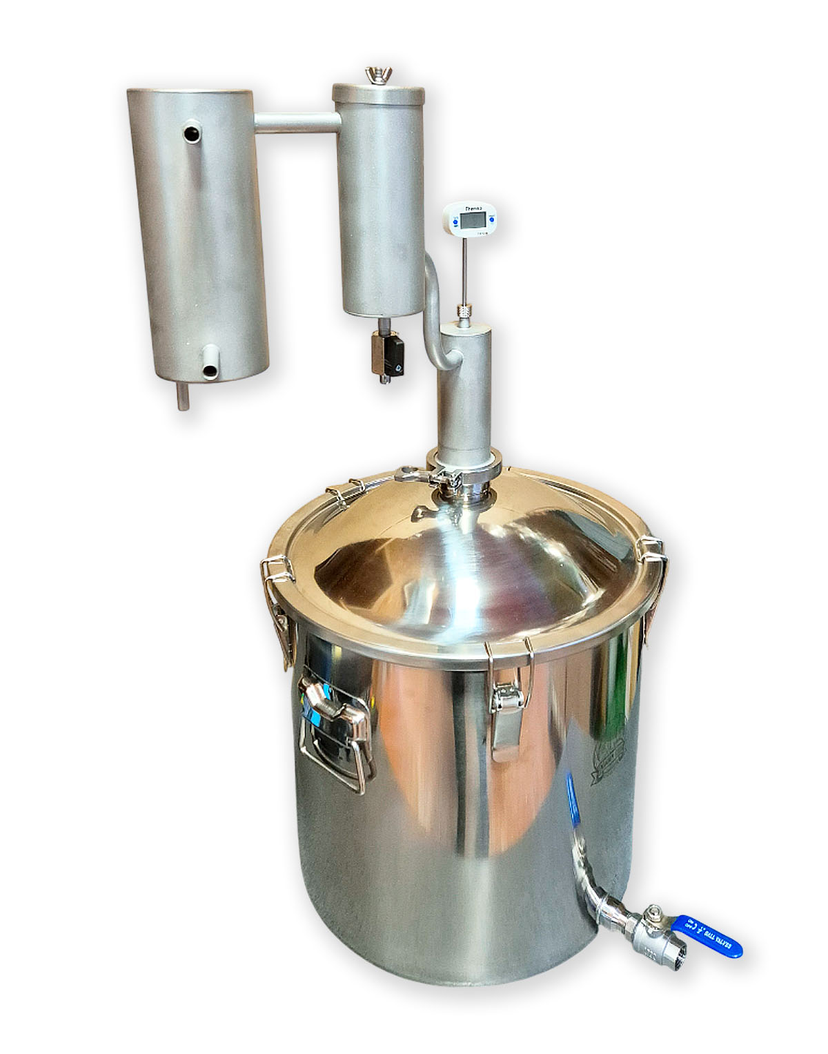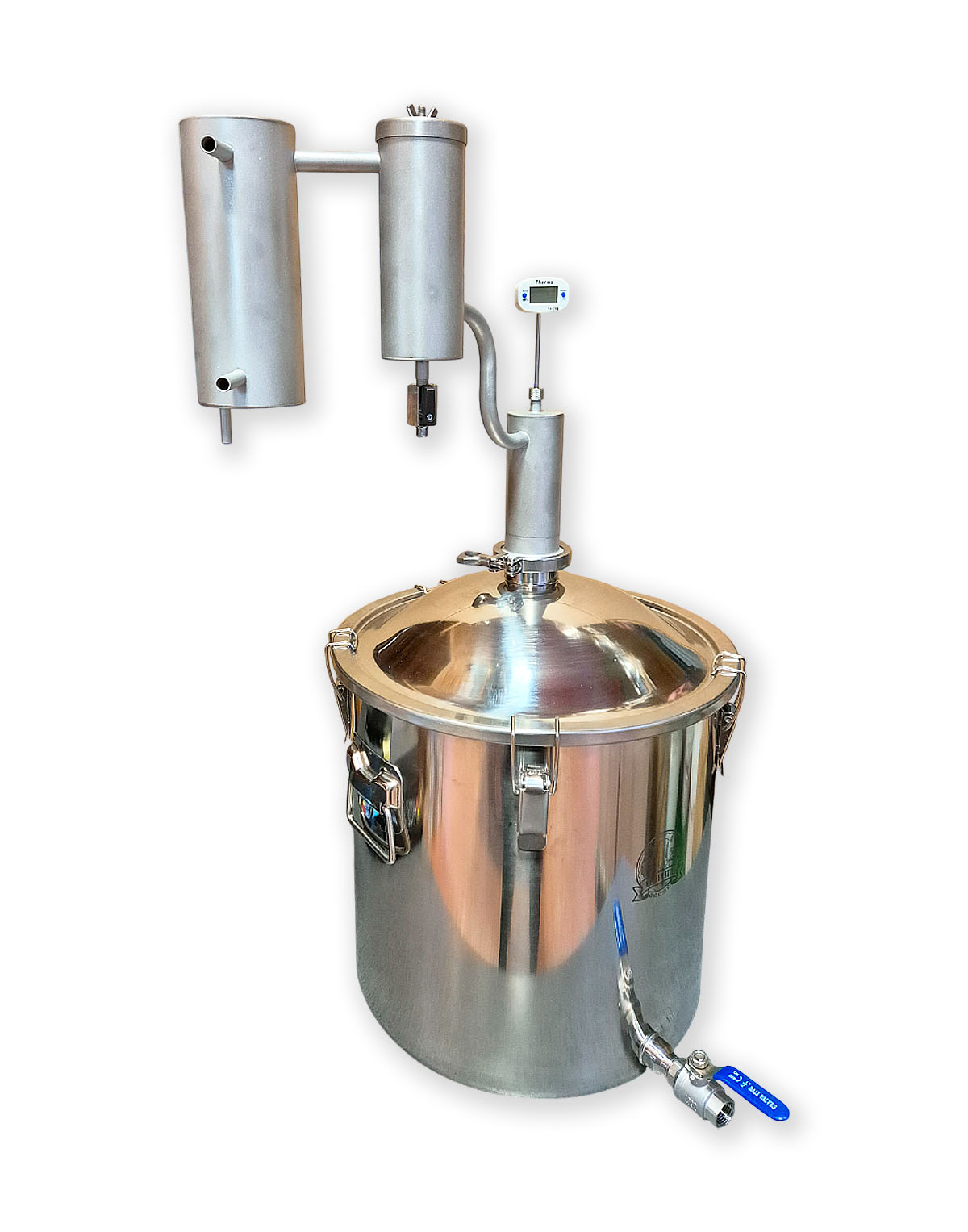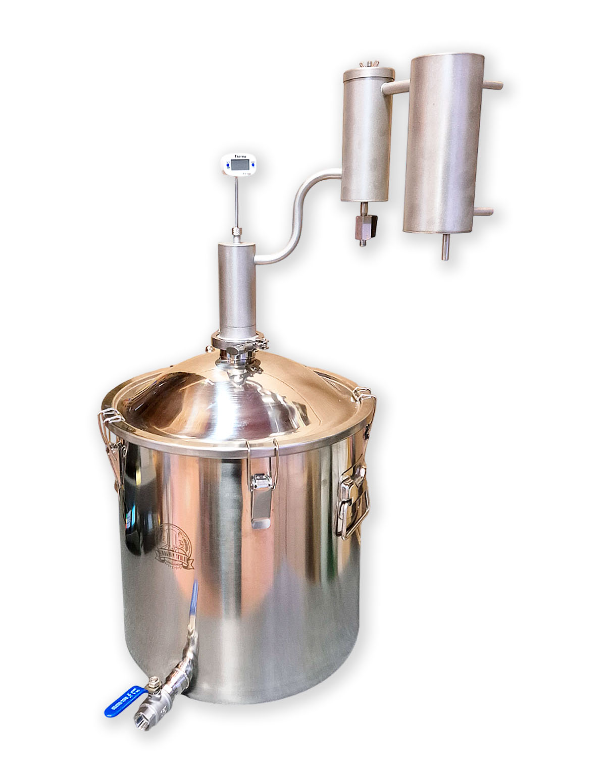 • Eigenständige Modifikationsmöglichkeit – 2″-Klemmverbindung (Schellenanschluss) gibt die Möglichkeit, andere Komponenten für die Destillation zu verwenden, z.B., eine zusätzliche Zarge, ein Diopter oder einen Alembik;
