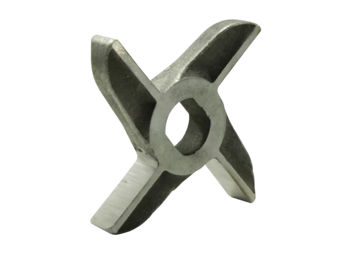 Die robuste Metalllegierung hält industriellen Belastungen beim Zerkleinern großer Fleischmengen stand.