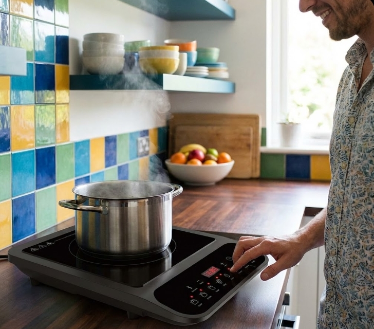 Ideal für kleine Räume (Studentenwohnheime, Gartenhäuser), als zusätzliches Kochfeld für Feiern oder für den mobilen Einsatz beim Camping (sofern ein Stromanschluss vorhanden ist). Zur Verwendung mit Induktionstöpfen und -pfannen.
