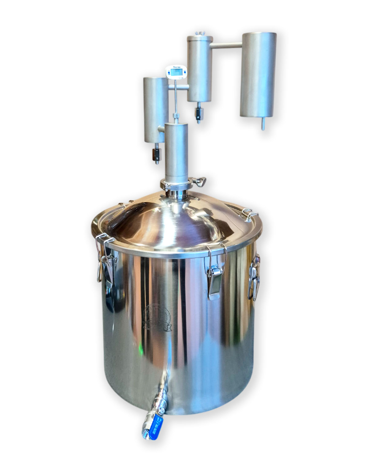 • Eigenständige Modifikationsmöglichkeit – 2″-Klemmverbindung (Schellenanschluss) gibt die Möglichkeit, andere Komponenten für die Destillation zu verwenden, z.B., eine zusätzliche Zarge, ein Diopter oder einen Alembik;