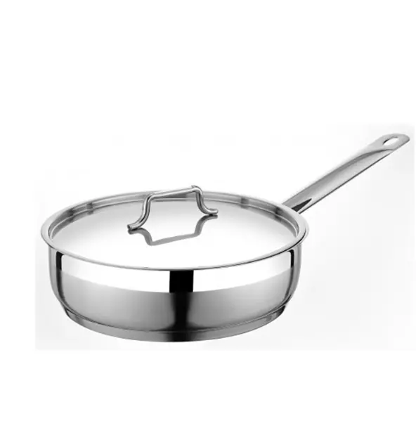 Pfanne: Die „Profi“-Edelstahlpfanne ist ideal zum Anbraten von Fleischstücken – das beste Ergebnis wird erzielt, ohne schädliche Beschichtungen zu verwenden.