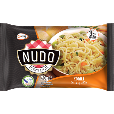 Instant-Nudelgericht im Beutel mit aromatischen Curry-Gewürzen. Entwickelt für eine schnelle und bequeme Zubereitung im Topf auf dem Herd. Halal-zertifiziertes Produkt.