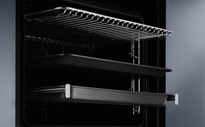 Jedes Detail ist für Ihren Komfort konzipiert. Die „Velvet Closing™“ Technologie sorgt dafür, dass sich die Tür immer langsam, leise und sanft schließt. Und die Teleskopschienen ermöglichen es Ihnen, heiße Bleche bequem und sicher herauszuziehen, um das Gericht zu überprüfen oder zu garnieren.