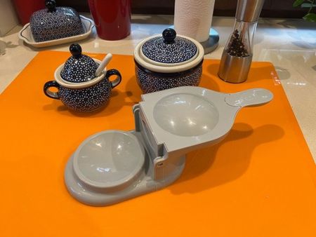 Das Gerät verfügt über einen speziellen ergonomischen Griff, der für bequemen Druck ausgelegt ist, sodass die Hände auch bei der Herstellung einer großen Menge Piroggen nicht ermüden. Es ist sehr einfach zu bedienen: Sie legen einen Teigkreis und die Füllung ein und formen mit einem einzigen Druck eine perfekte Pirogge. Dies ist ein großartiges Werkzeug sowohl für Anfänger als auch für erfahrene Köche.