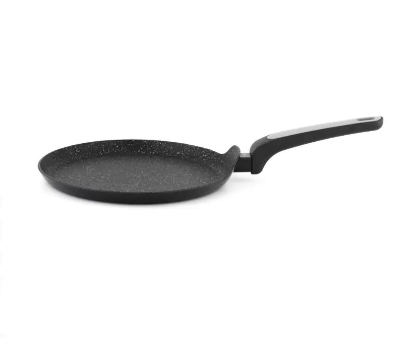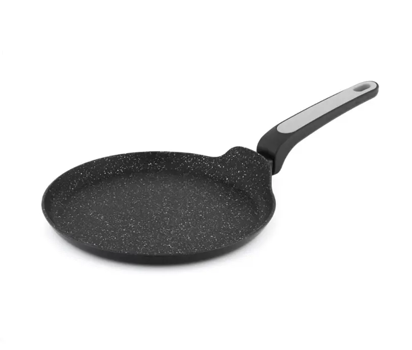 Die Pfanne ist zum Zubereiten von dünnen Crêpes, amerikanischen Pfannkuchen, Rührei oder anderen schnell zubereiteten Gerichten gedacht. Dank ihrer Form und schnellen Wärmeverteilung ermöglicht sie ein gleichmäßiges Bräunen der gesamten Oberfläche des Pfannkuchens, ohne oder mit minimaler Fettzugabe.