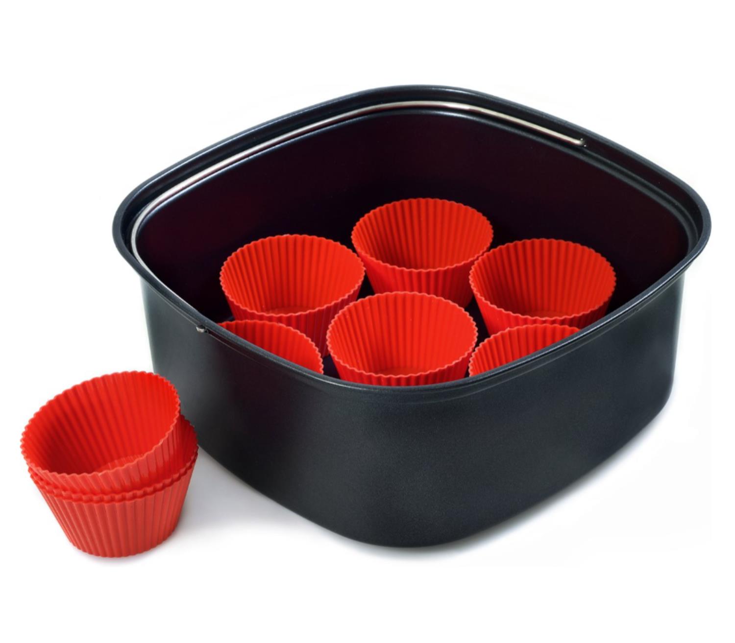Backzubehör zum Backen, Zubereiten von Aufläufen, Quiches, Kuchen und Muffins in einer Heißluftfritteuse (Airfryer). Erweitert die Funktionen der Airfryer XXL und verwandelt sie in einen kompakten Ofen.