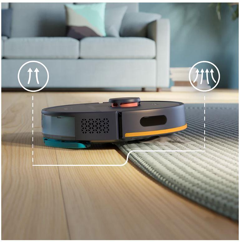 - Intelligente Navigation: Der Roboter erstellt eine Karte des Hauses (Floor map memory: Yes), wodurch er die Route effizient planen und keine Ecke auslassen kann.