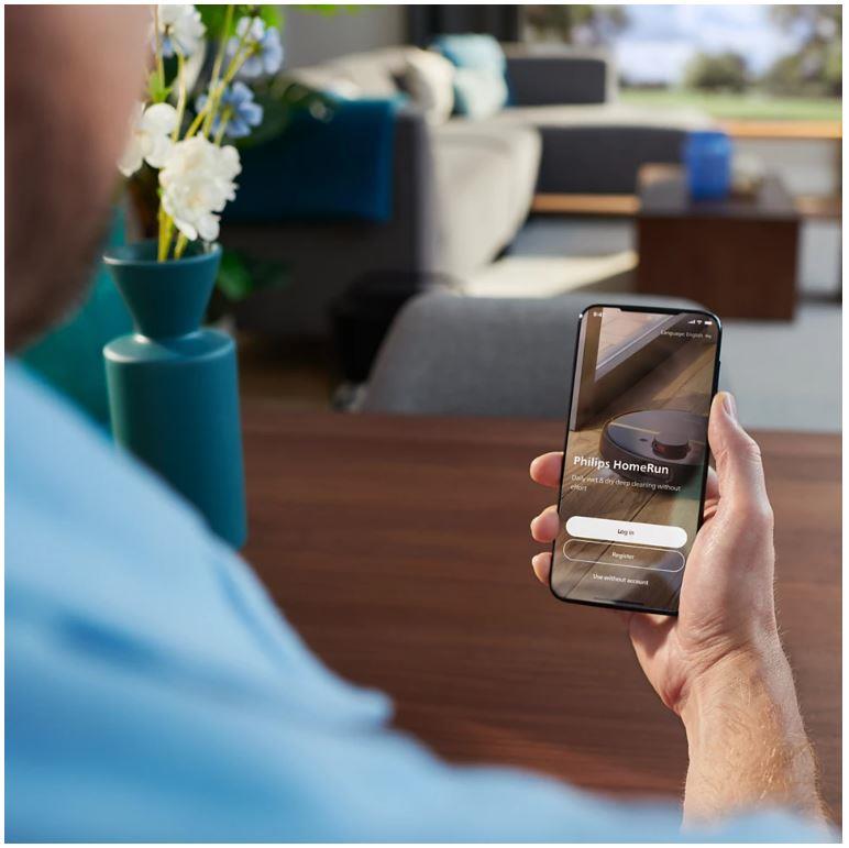 - Steuerung per “Philips HomeRun” App: Passen Sie die Reinigung vollständig an – legen Sie Zeitpläne, Sperrzonen (sowohl zum Staubsaugen als auch zum Wischen) und Reinigungsmodi für jeden Raum direkt auf Ihrem Telefon fest.