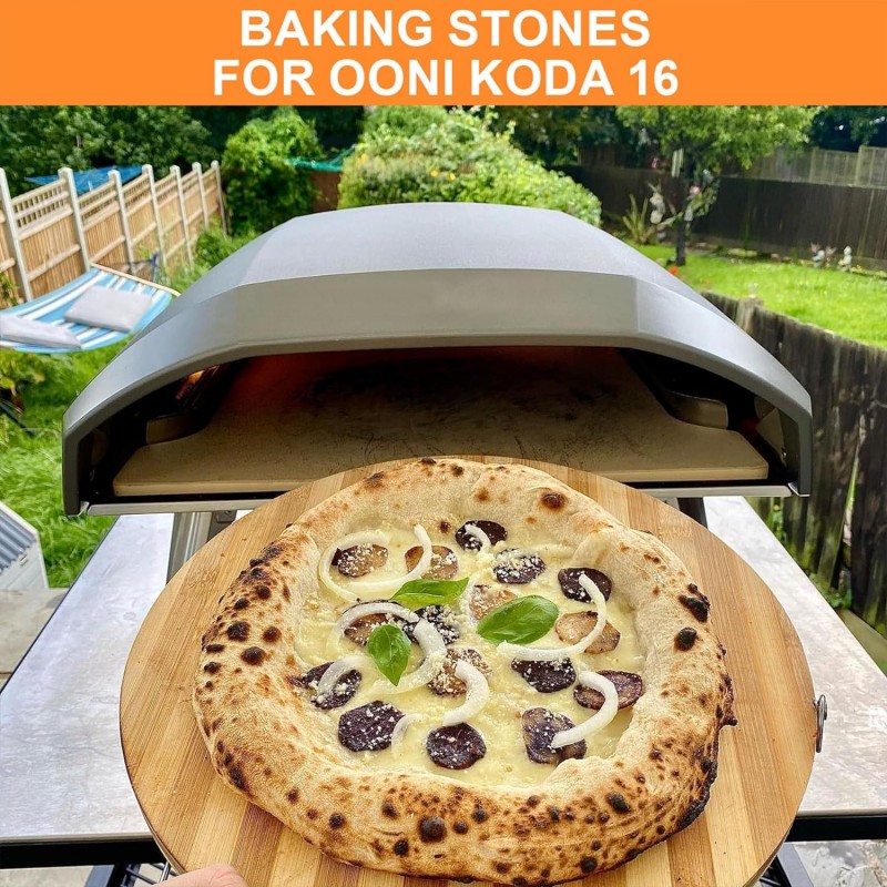 - Größe: Der Stein hat einen Durchmesser von 16 Zoll (ca. 40,6 cm), wodurch er perfekt zum Backen im Ooni Koda 16 Ofen geeignet ist.