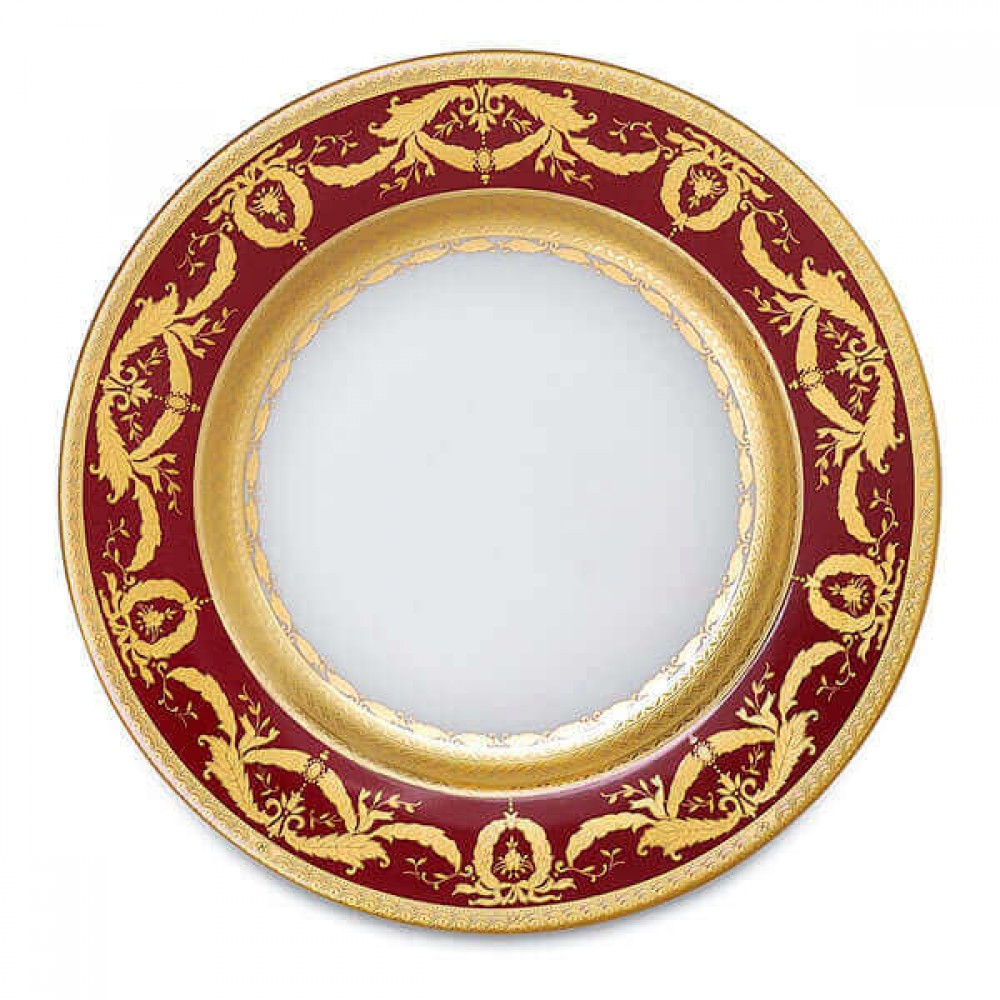 Ein besonderer tiefer Rotton, der Bilder von Luxus und Pracht hervorruft, begrenzt durch zwei fein gemusterte Goldlinien – es gibt keinen besseren Weg, Eleganz und Schönheit darzustellen.