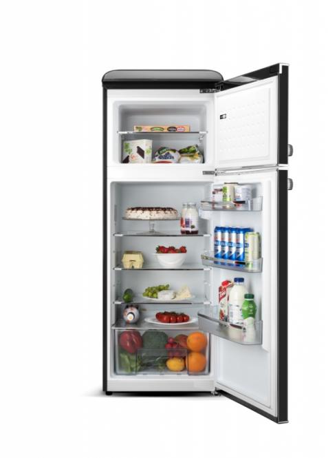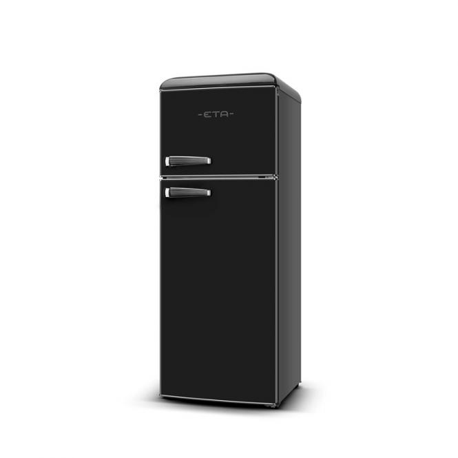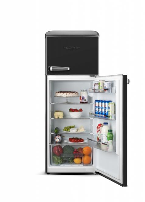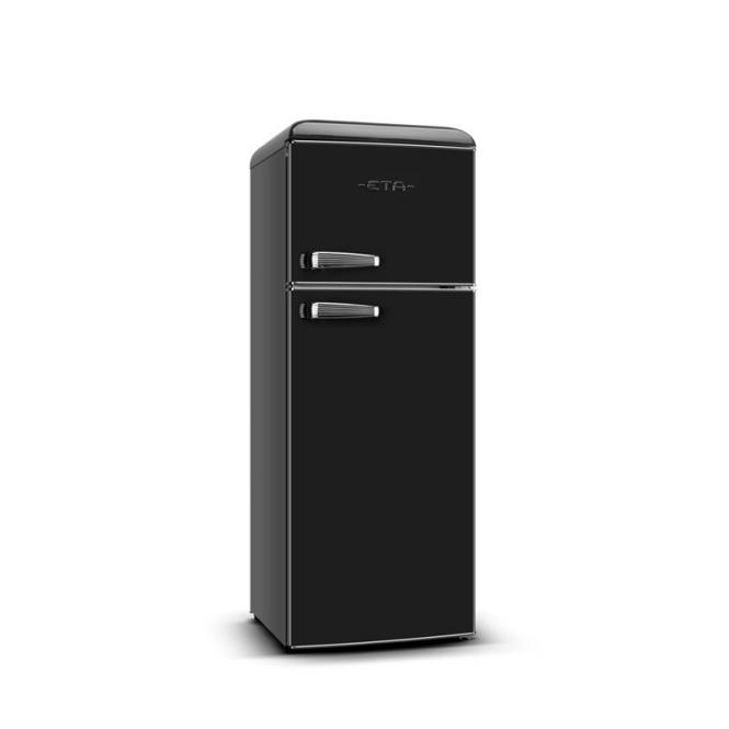 Wir präsentieren den ETA STORIO – einen Designer-Kühlschrank mit zwei Türen, der ein leuchtendes Beispiel dafür ist, wie Retro-Stil und moderne Technologie perfekt miteinander harmonieren. Seine abgerundeten Formen, die glänzend schwarze Farbe und die stilvollen Chromgriffe werden zum Schmuckstück Ihrer Küche, während die inneren Funktionen eine komfortable und zuverlässige Lebensmittellagerung gewährleisten.