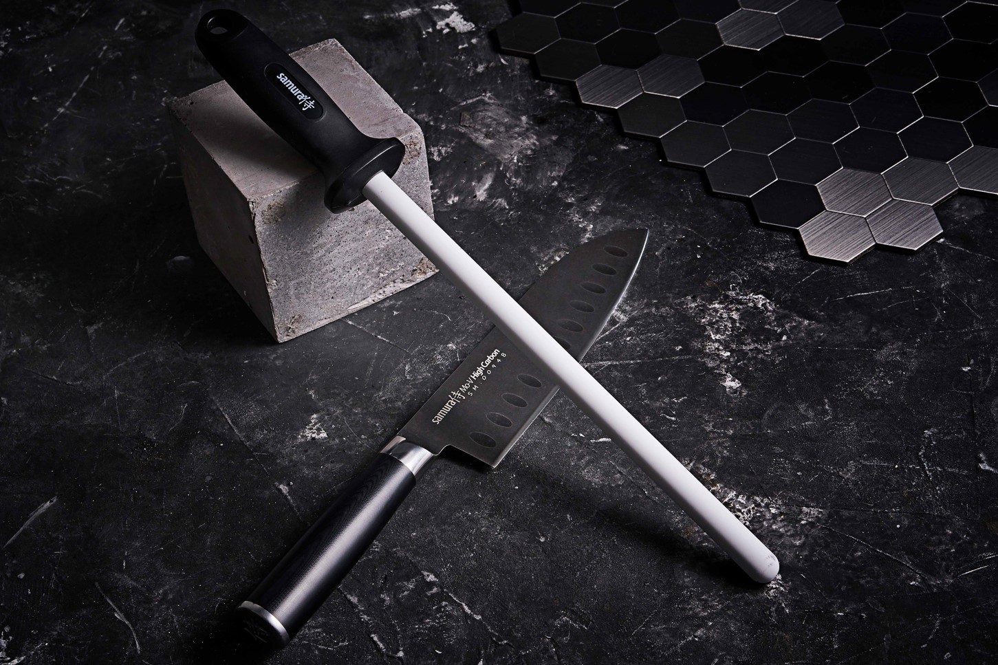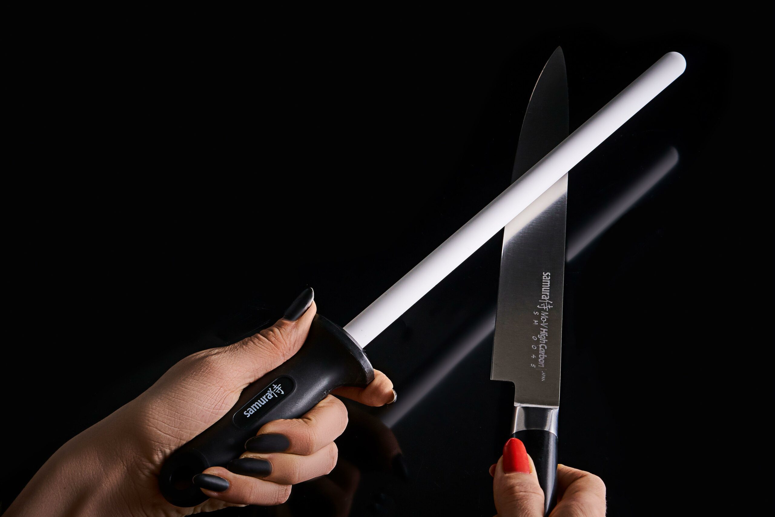 - Ceramic Musat for Knifes ist ein universelles Schleifwerkzeug, das für jedes Klingenmaterial (sowohl Stahl als auch Keramik) geeignet ist. Es ist nicht zum Schärfen gedacht, sondern zum einfachen Abrichten und zur Aufrechterhaltung einer einwandfreien Schärfe der Schneide.
