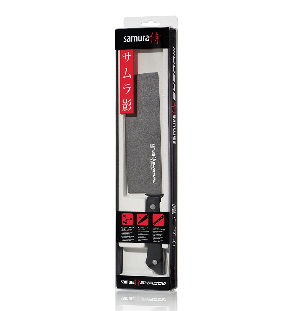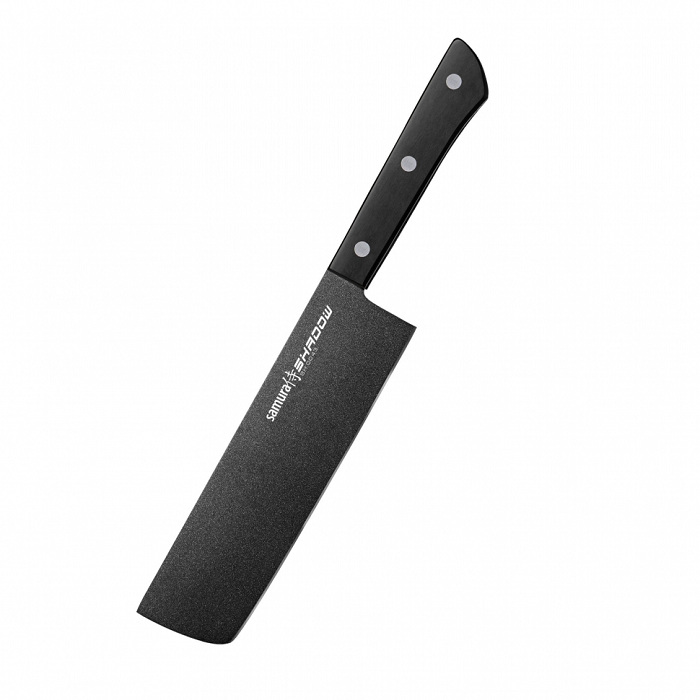 Das schwarze Nakiri-Küchenmesser aus der Samura Shadow-Kollektion ist eine Art Küchenaxt. Seine Hauptaufgabe besteht jedoch nicht darin, feste Produkte zu schneiden oder andere entscheidende Maßnahmen zu ergreifen. Der Hauptzweck von Nakiri ist die Arbeit mit pflanzlichen Produkten. Mit den dünnsten Klingen können Sie eine Vielzahl von Gemüse, Kräutern und Früchten mühelos, aber sehr sorgfältig hacken, hacken oder schneiden.
