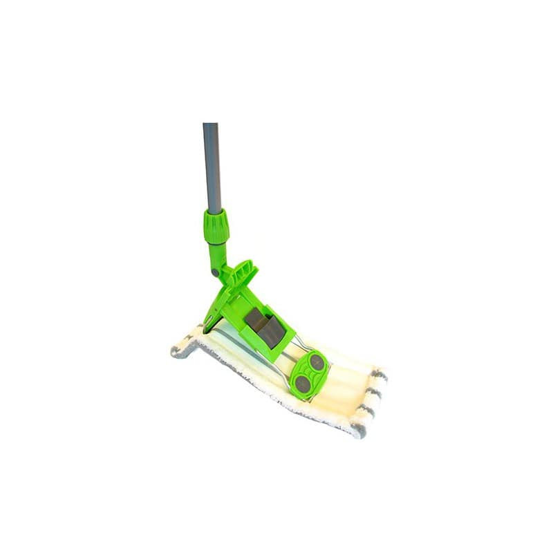 Flacher Bodenwischer mit Mikrofaserbezug und Teleskopstiel. Entwickelt für die effektive Nass- und Trockenreinigung in kleinen und mittelgroßen Räumen. Geeignet für die Reinigung aller Arten von Hartböden ohne chemische Reinigungsmittel.