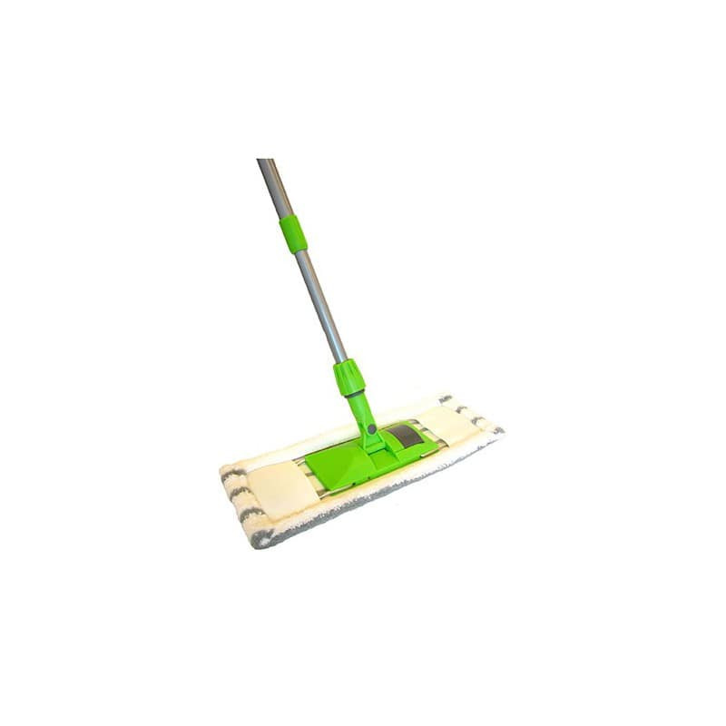 Breite Bodenbürste mit Mikrofaserbezug und Teleskopstiel. Entwickelt für die effektive Nass- und Trockenreinigung großer Räume. Geeignet für alle Arten von Hartböden zur Reinigung ohne chemische Reinigungsmittel.