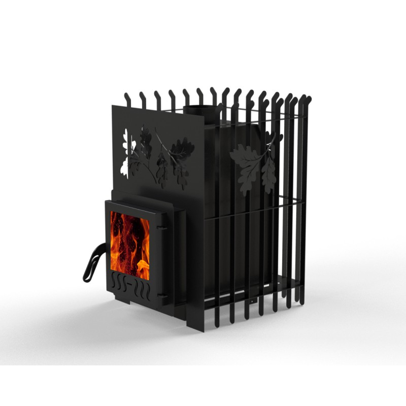 Der Hauptunterschied ist die Glastür. Sie bietet eine ästhetische Optik und ermöglicht es, das Feuer während des Saunagangs zu sehen.