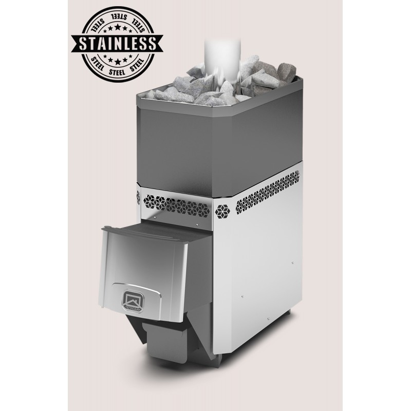 Der Ofen ist für mittelgroße Dampfbäder (6-12 m³) konzipiert. Die „Profi“-Serie ist für höhere Belastungen ausgelegt und eignet sich daher nicht nur für den privaten Gebrauch, sondern auch für häufiger beheizte Saunen. Der zentrierte Rauchrohrausgang erleichtert die Installation und gewährleistet durch die gleichmäßige Wärmeverteilung eine höhere Sicherheit.