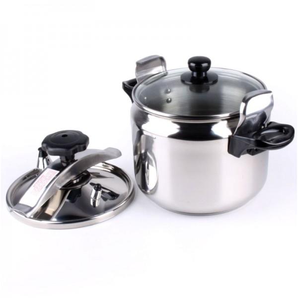 Dicht schließender Deckel. Mehrschichtiger Boden, verteilt die Wärme perfekt, hat ein doppeltes Schutzsystem, einen unabhängigen internen Druckregler.