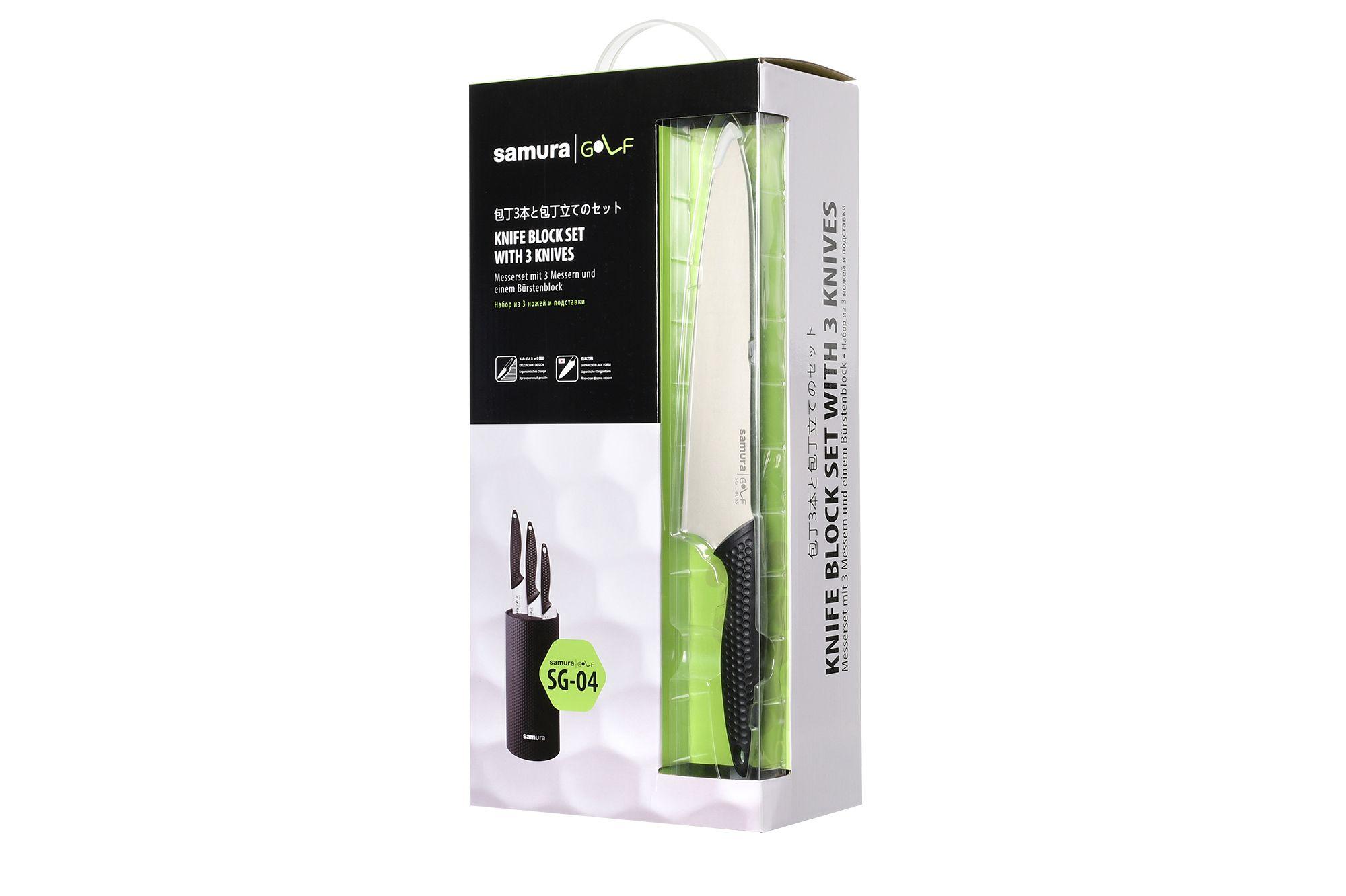 Erstklassiger Stahl AUS-8 ist für die Dauer der Schärferetention verantwortlich. Der dünne Schaft der Messer verstärkt das Gefühl der Finesse des Messers. Die außergewöhnliche Funktionalität des Samura Golf macht dieses Set der Serie einfach unverzichtbar.