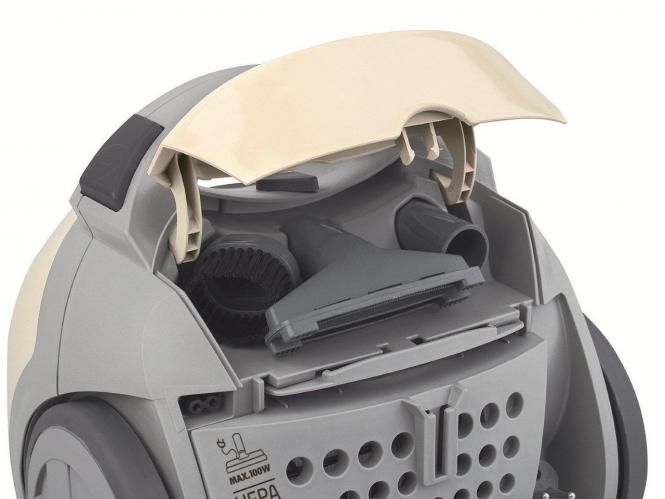 - Ist das Zubehör bequem zu verstauen? Ja, im Staubsaugergehäuse befindet sich ein spezielles Fach zur Aufbewahrung kleinerer Düsen, sodass diese immer griffbereit sind.