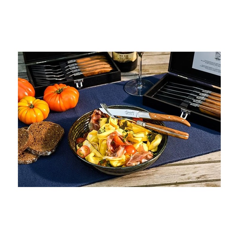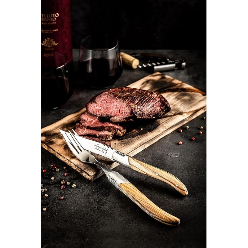 Einer der Bestseller! Die Olivenholz-Produktserie “Luxury Line”. Mit dem 6-teiligen Gabelset ist Ihr Steakmesser- und Löffel-Set nun komplett. Wunderschön verarbeitet mit Olivenholz, passt diese Serie in jedes Zuhause und jede Umgebung. Die Gabeln sind 2,5 mm dick und liegen daher angenehm in der Hand. Diese Serie ist nicht spülmaschinenfest. Sie werden in einer luxuriösen schwarzen Box geliefert.