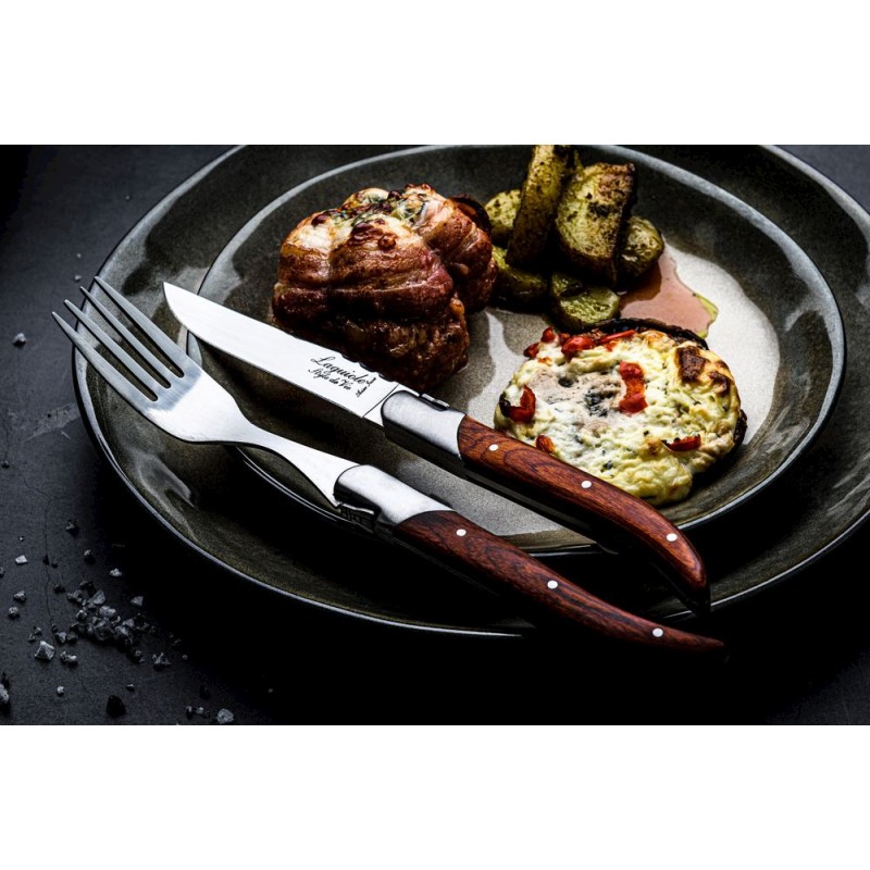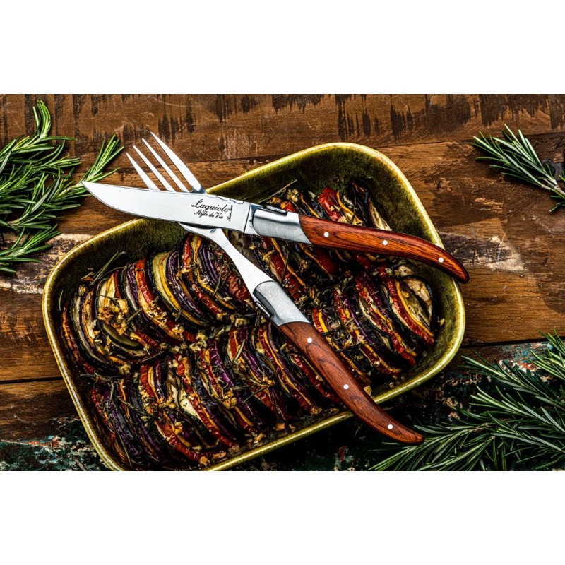 Mit diesem 6-teiligen Gabelset “Pakka Rose” aus der “Laguiole Style de Vie” Luxuslinie können Sie ein exzellentes Abendessen genießen. Die Gabeln sind 2,5 mm dick und nicht spülmaschinenfest. Jedes Set wird in einer schönen schwarzen Box geliefert. Die 6-teiligen “Luxury Line” Gabeln sind auch in verschiedenen anderen Farben und Materialien erhältlich.