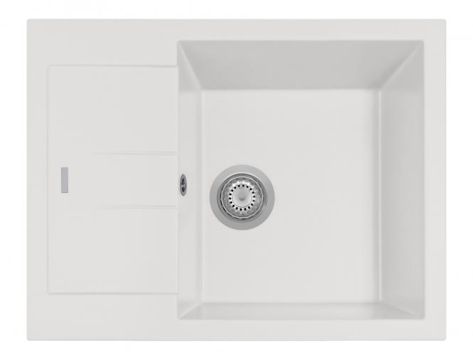 Hochwertige, 65×50 cm große Einzelspüle aus Steinzeug mit Abtropffläche. Aufgrund ihrer kompakten Größe ist sie ideal für kleinere Küchen. Die innovative ARIAPURA-Technologie ist besonders geeignet für diejenigen, die Wert auf Hygiene und ein gesünderes Wohnumfeld legen.