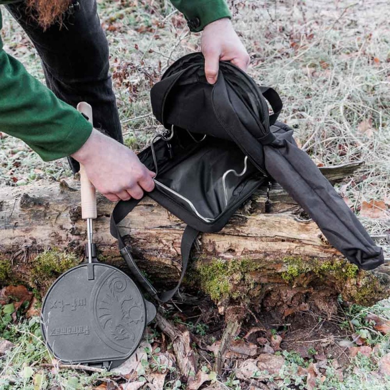 Die Petromax Transporttasche ist eine einfache und praktische Möglichkeit, die Petromax Waffeleisen-Gusseisenpfanne zu verstauen und aufzubewahren. Die Tasche ist aus robustem Ripstop-Gewebe gefertigt und mit dem Petromax Logo bestickt. Im Inneren der Tasche befinden sich eine Reißverschlusstasche und zwei Einschubtaschen, die Platz für verschiedenes Zubehör bieten.