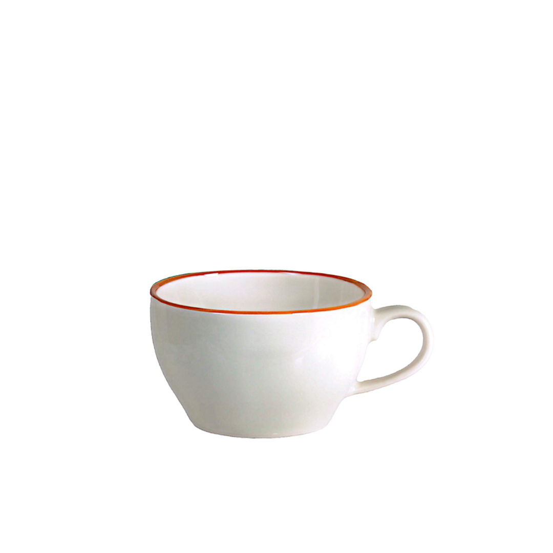 Porzellan verteilt die Wärme gut, sodass der bequem geformte Henkel ein sicheres Halten der Tasse auch mit einem heißen Getränk ermöglicht.