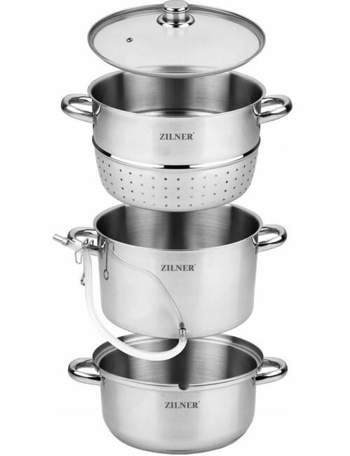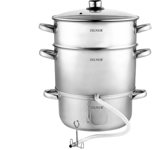 - Topf, in dem Saft gesammelt wird – ausgestattet mit einem Rohr, das den Saft in einen ersetzten Behälter ablässt – 26 x 15 cm, 8 l