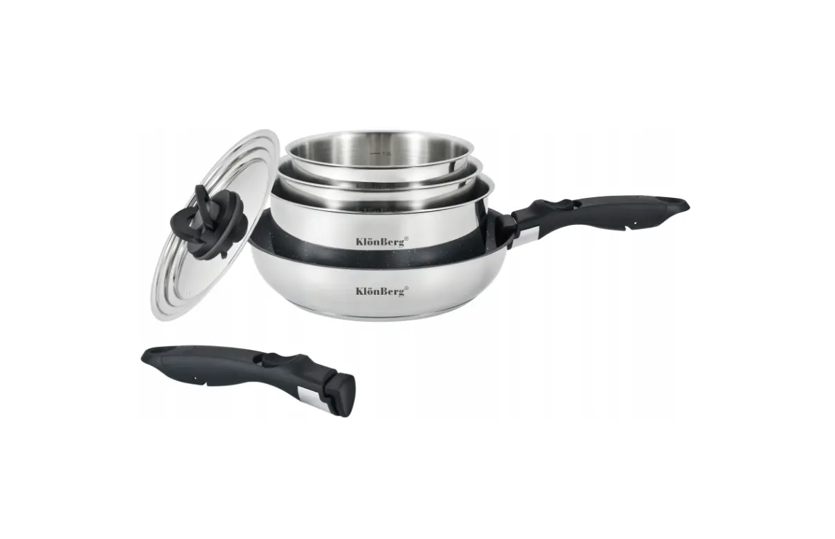Das Set ist zum Kochen, Braten und Schmoren auf allen Herdarten (Gas, Elektro, Keramik und Induktion) geeignet. Dank des abnehmbaren Griffs können die Gefäße (ohne Deckel und Griff) zum Backen im Backofen und zur bequemen Aufbewahrung von Speisen im Kühlschrank verwendet werden, wodurch Platz in den Regalen gespart wird.