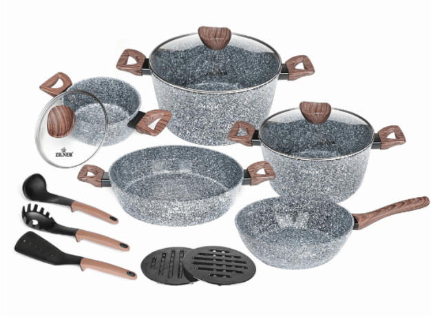 - Mit diesem Kochgeschirr-Set können Sie mit einem Minimum an Fett kochen.