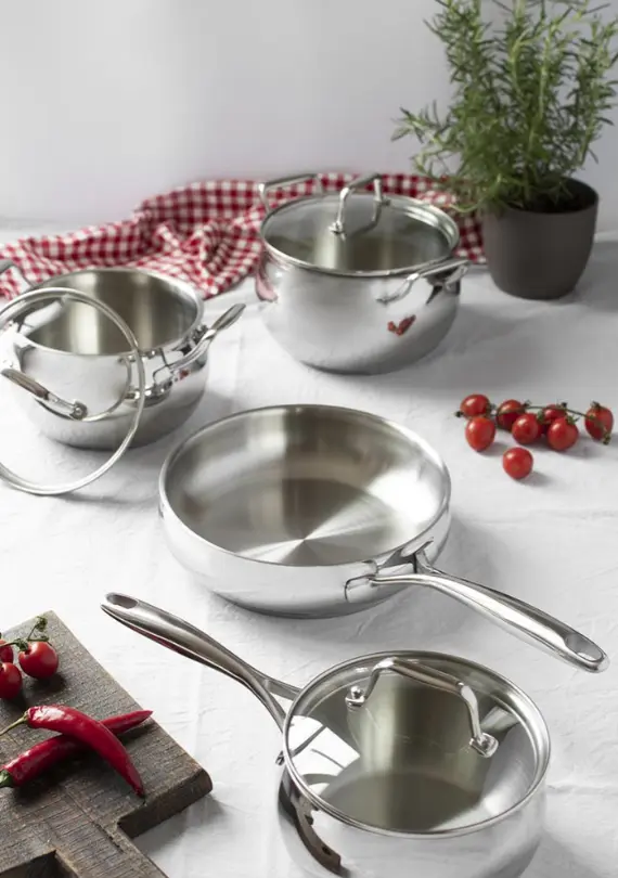 Das Set ist für vielseitiges Kochen auf allen Herdarten konzipiert. Das Set enthält Töpfe in verschiedenen Größen, eine Pfanne und einen Stieltopf, sodass Sie Suppe, Hauptgericht und Soße gleichzeitig zubereiten können, wodurch Zeit und Energie optimiert werden.