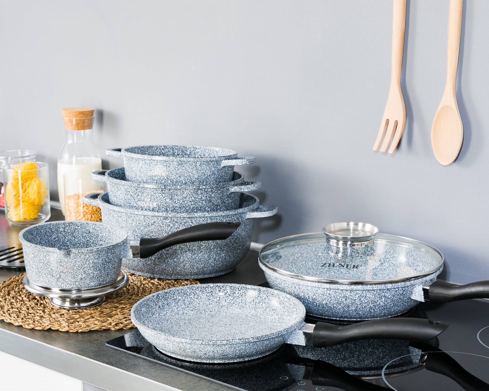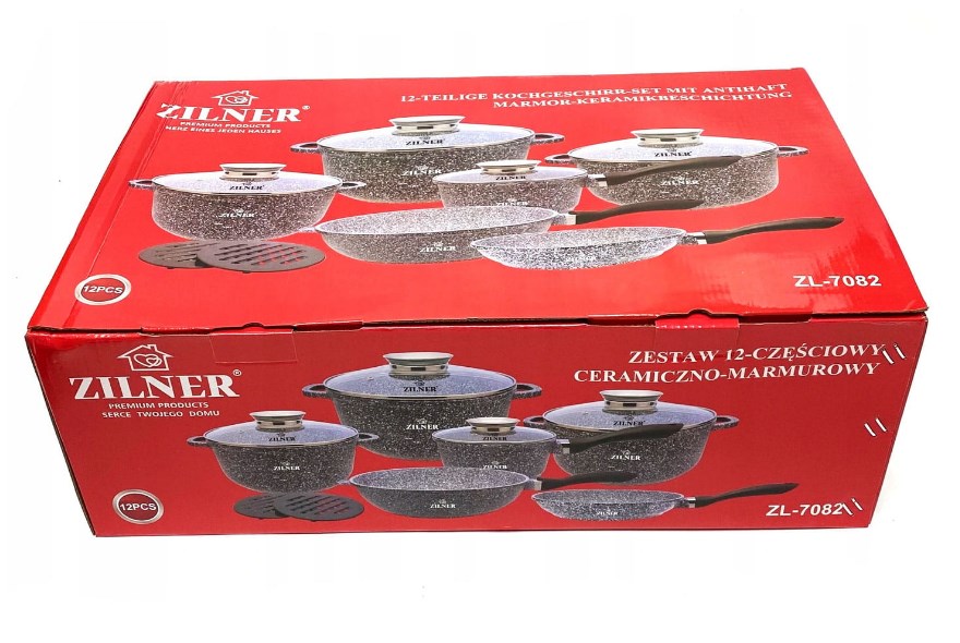 ZILNER 7082 Topfset mit keramischer Antihaft-Marmorbeschichtung und Zubehör (12-teilig).