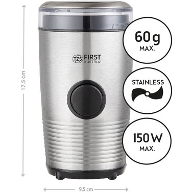 Genießen Sie jeden Morgen das unvergleichliche Aroma frisch gemahlenen Kaffees! Mit dieser kompakten und praktischen TZS First Austria Mühle ist das ganz einfach. Das Gerät ist vielseitig – es zerkleinert nicht nur Kaffeebohnen, sondern auch verschiedene Kräuter, Nüsse oder Getreide. Entdecken Sie neue Geschmacksrichtungen und würzen Sie Ihre Gerichte mit frisch gemahlenen Zutaten.
