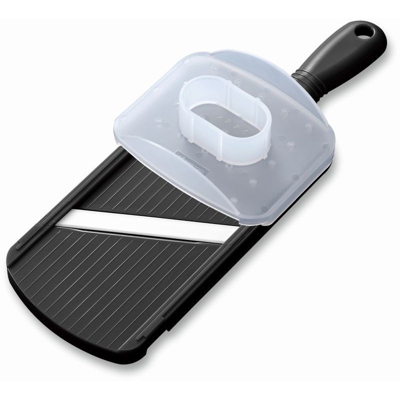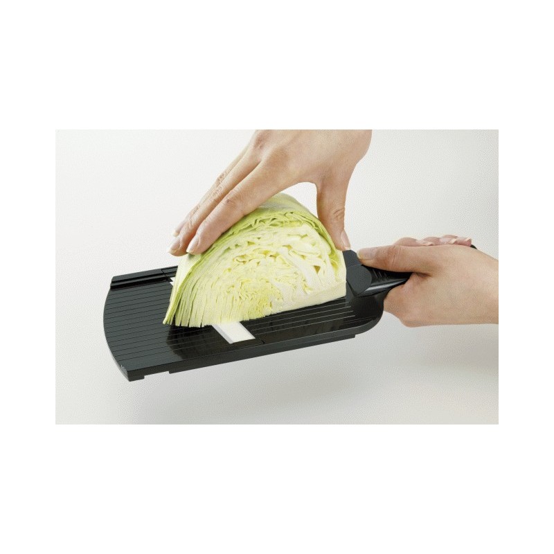 das Gemüse gleitet über die Klinge für absolut präzise Schnitte, ohne daran zu zerren oder zu reißen inclusive Fingerschutz