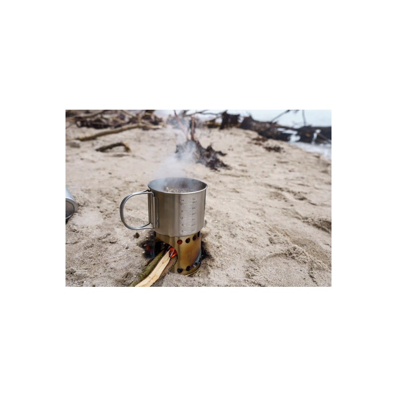 Petromax Universalbecher, um Ihr Lieblingsgetränk zu trinken oder als Topf zum Kochen. Das bedeutet, dass Sie für Ihre Abenteuer in der Natur bereit sind und kein zusätzliches Gepäck mitnehmen müssen. Mit einem solchen Becher lässt sich leicht eine wind- und feuchtigkeitsgeschützte Kochstelle einrichten. Der Behälter bietet ausreichend Platz für kleines Brennholz, Kohlen oder jeden anderen gängigen Brennstoff. Er kann zusammengefaltet und sogar mit anderen Gegenständen wie Holz oder einer Wasserflasche gefüllt werden, um Platz im Rucksack zu sparen.