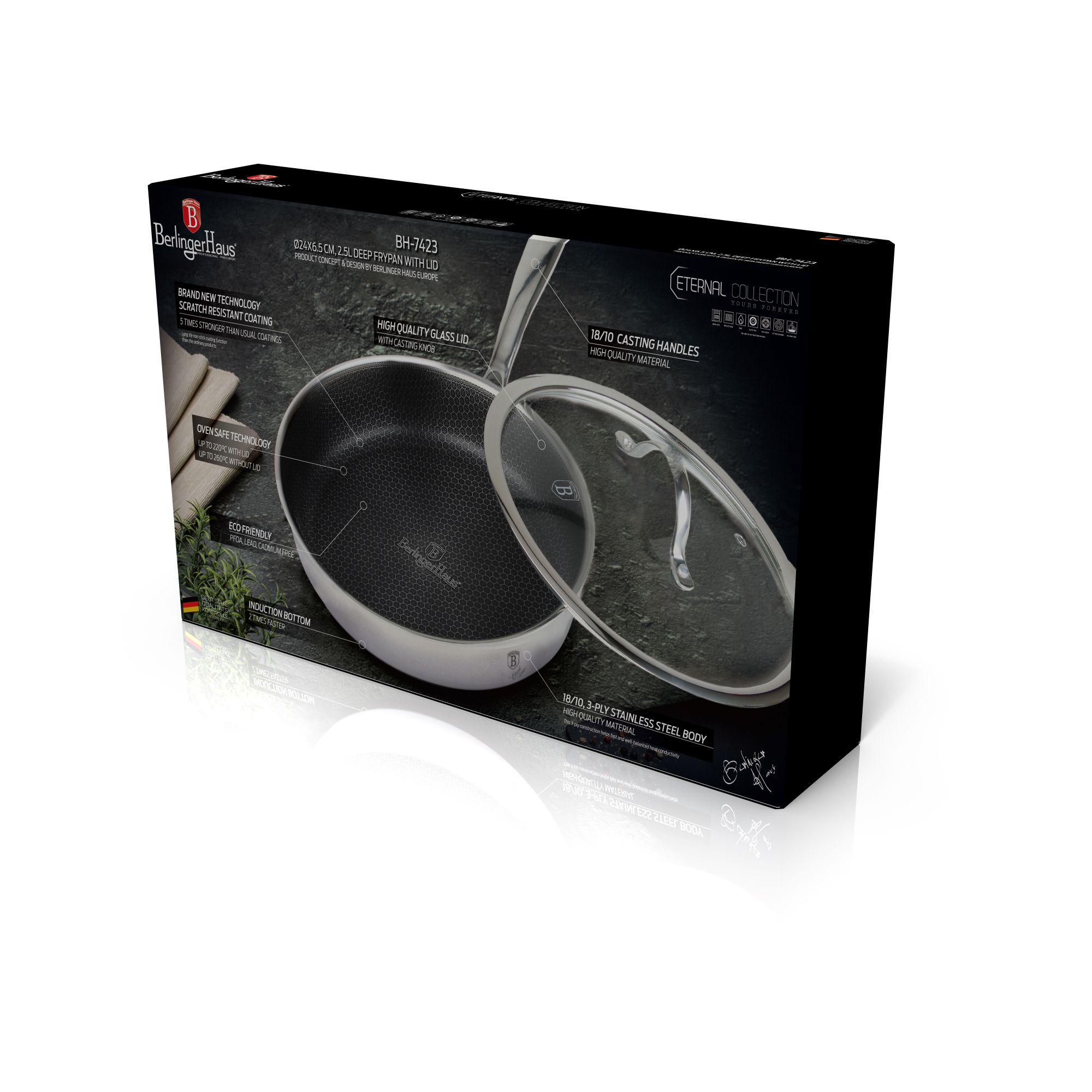 Die universelle Pfanne der Berlinger Haus Eternal Collection ist ein hochwertiges Produkt, das modernes Design mit praktischen Funktionen verbindet und es zu einem unverzichtbaren Küchenutensil macht. Diese Pfanne ist mit einer hochwertigen Antihaftbeschichtung und einer robusten Konstruktion ausgestattet, die eine zuverlässige Nutzung und Langlebigkeit gewährleistet.
