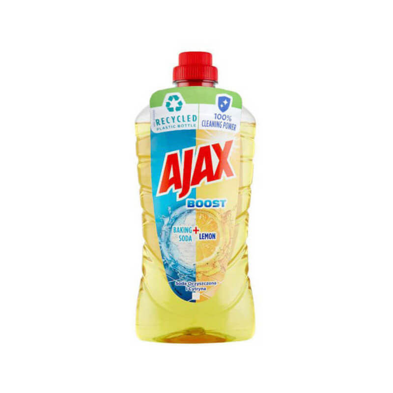 Verleihen Sie Ihrem Zuhause makellose Sauberkeit mit dem AJAX Reiniger, dessen Formel mit der natürlichen Kraft von Soda angereichert ist. Er reinigt nicht nur alle abwaschbaren Oberflächen effektiv, sondern beseitigt auch mühelos Fettflecken und hinterlässt Ihr Zuhause strahlend und mit einem frischen Zitronenduft.