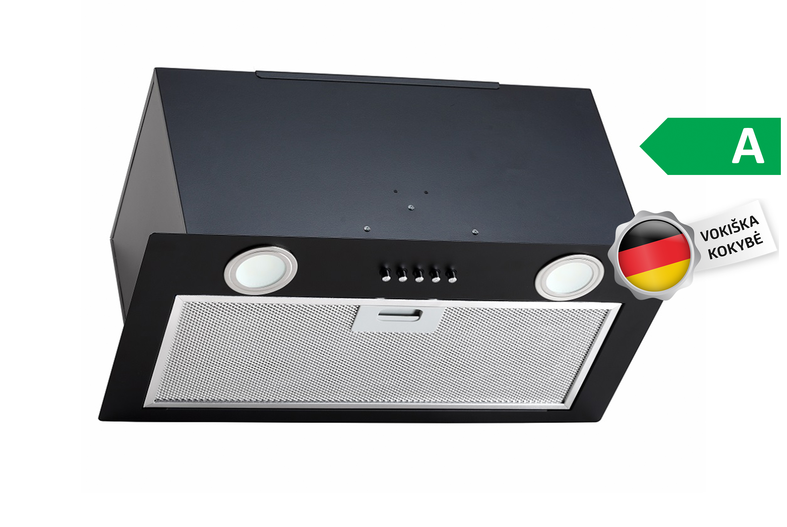 Einbau-Dunstabzugshaube (Einbau in den Schrank). Ideale Lösung für Standard-Kochfelder (52 cm breit) oder etwas breitere Kochfelder, wenn die Dunstabzugshaube versteckt werden soll.