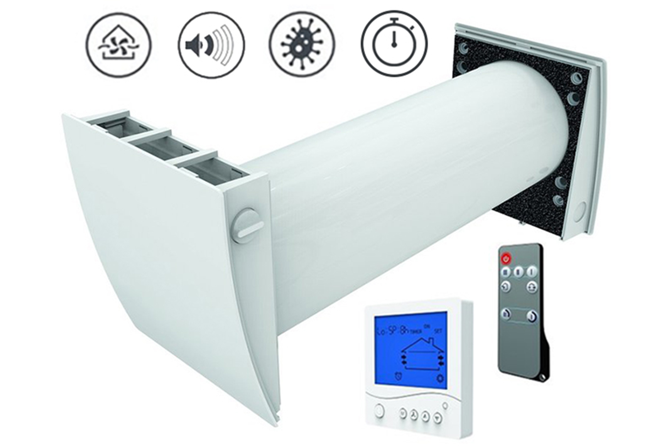 Dezentrales Einkammer-Lüftungsgerät (Schlafzimmer, Wohnzimmer, Büro) (Mini-Rekuperator) mit Wärmerückgewinnung. Konzipiert für die kontinuierliche und periodische Belüftung, um die CO2-Werte aufrechtzuerhalten, Feuchtigkeit und Gerüche zu beseitigen und Schimmelbildung vorzubeugen.