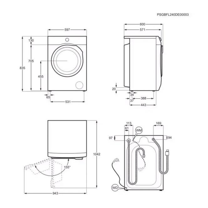 Wasserverbrauch Waschen/Trocknen, l – 62