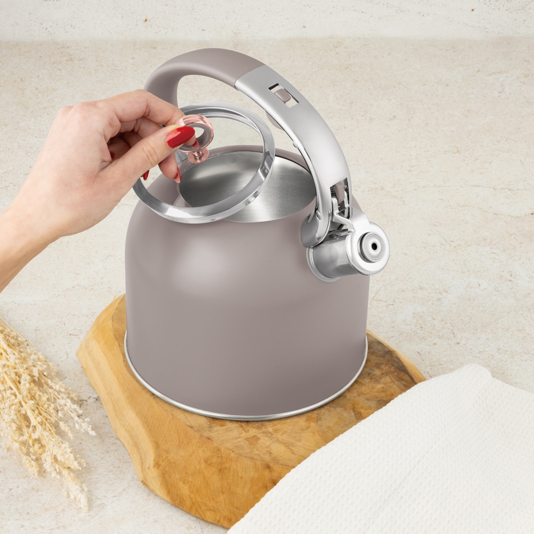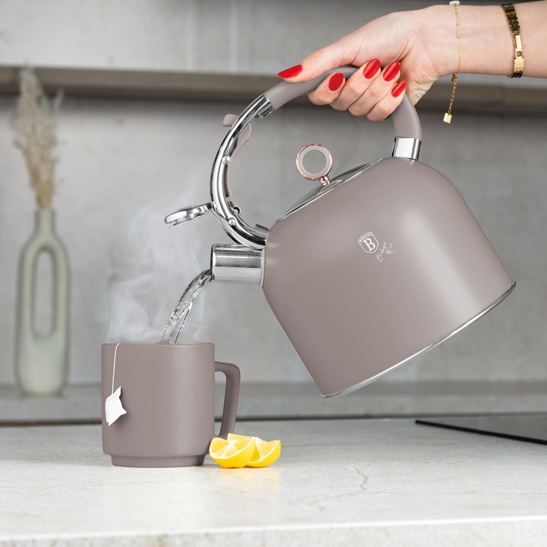 Der Wasserkocher ist für schnelles Wassererhitzen für Kaffee, Tee oder zum Kochen bestimmt. Dank seiner neutralen und luxuriösen Farbe passt er perfekt in moderne, skandinavische oder minimalistische Interieurs. Der universelle Boden gewährleistet eine effiziente Funktion auf allen Herdarten.