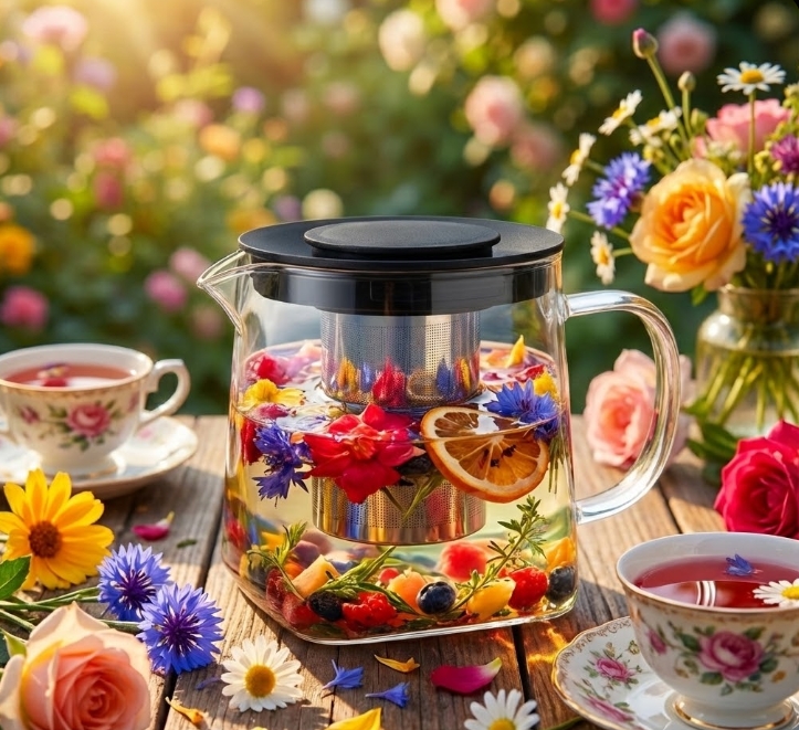 Aufbrühen und Servieren von losem Tee, Früchtetee und Kräutermischungen.